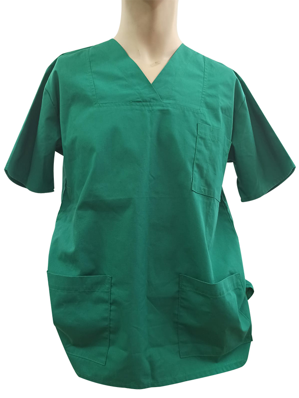 Se folosește un material rezistent 65 % poliester+ 35 % bumbac, acest amestec oferind finețea materialului. Croială standard, lejer, cu mânecă scurta gâtul in V, cu buzunar în partea stânga față si două buzunare laterale. A se spăla la 30 grade fără curățare chimică.